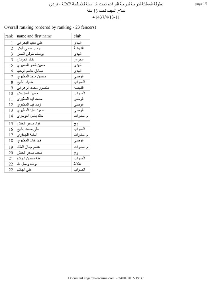 سلاح السيف تحت 13 سنة