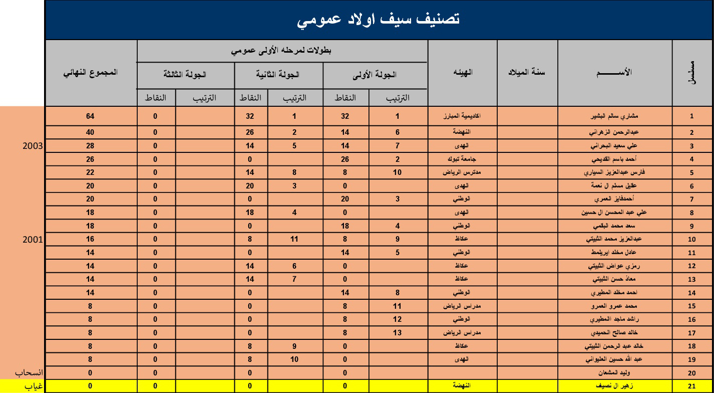بطولات لمرحلة الاولى عمومي