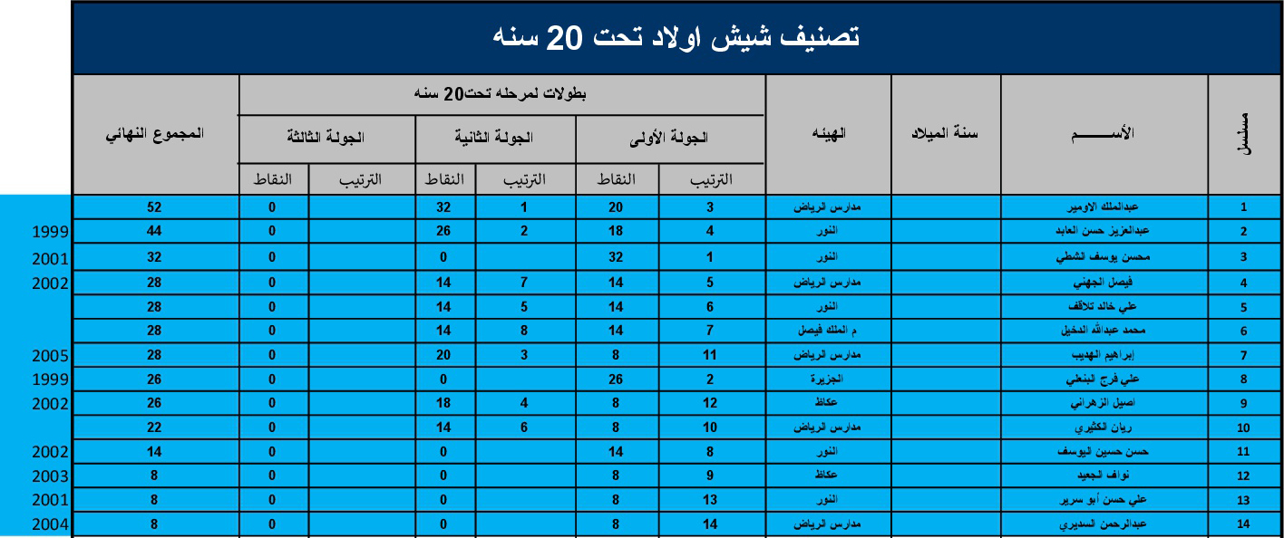بطولات لمرحلة 20 سنة