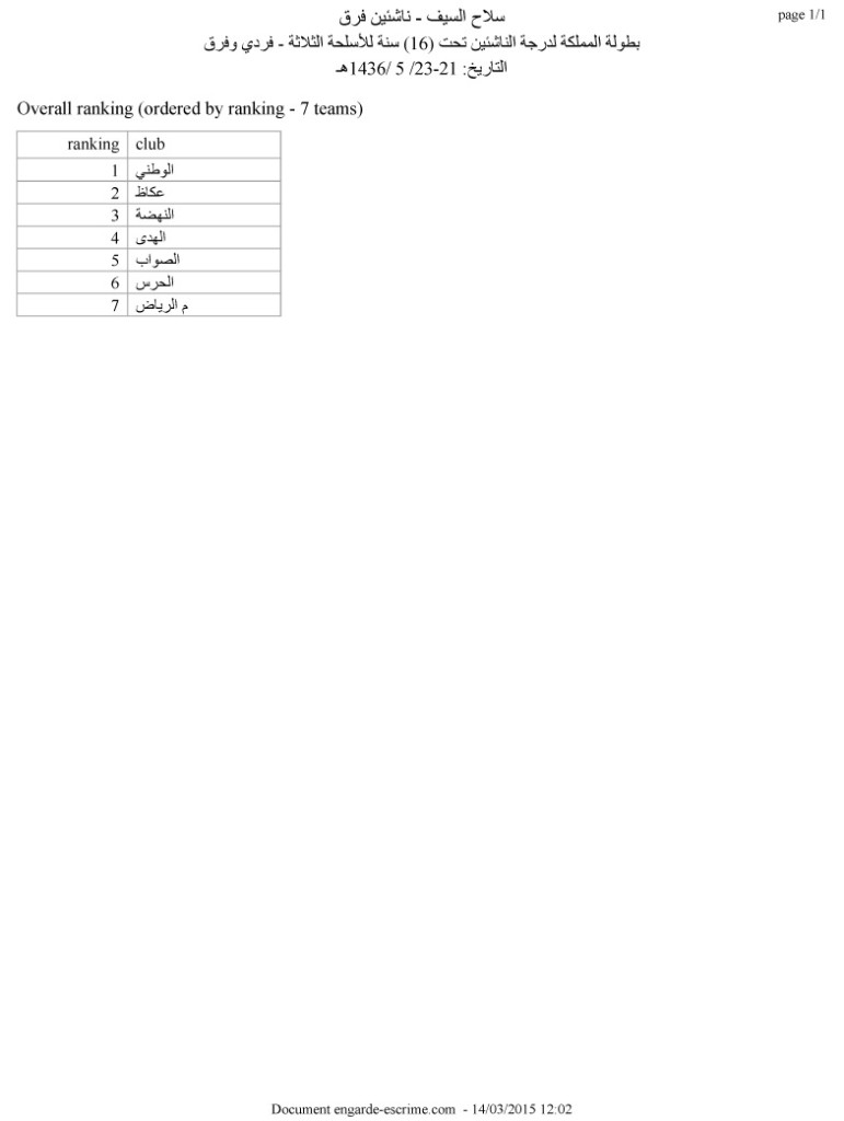 سلاح السيف – ناشئين فرق