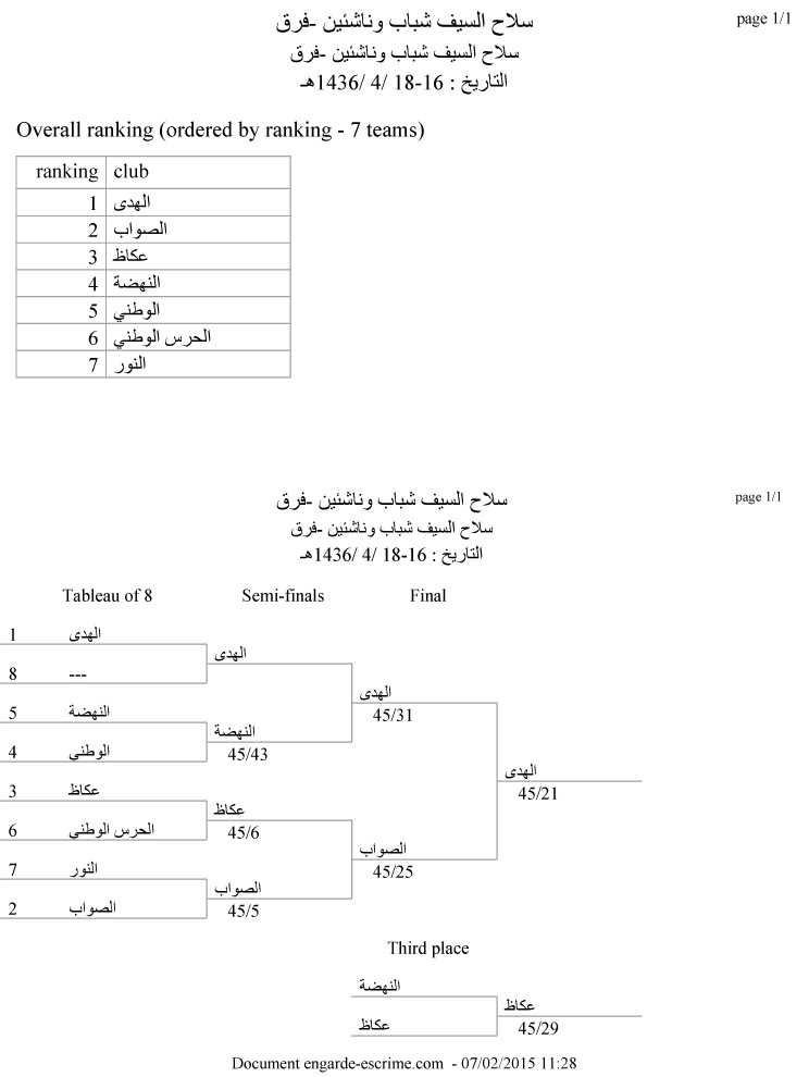 سلاح السیف شباب وناشئین – فرق
