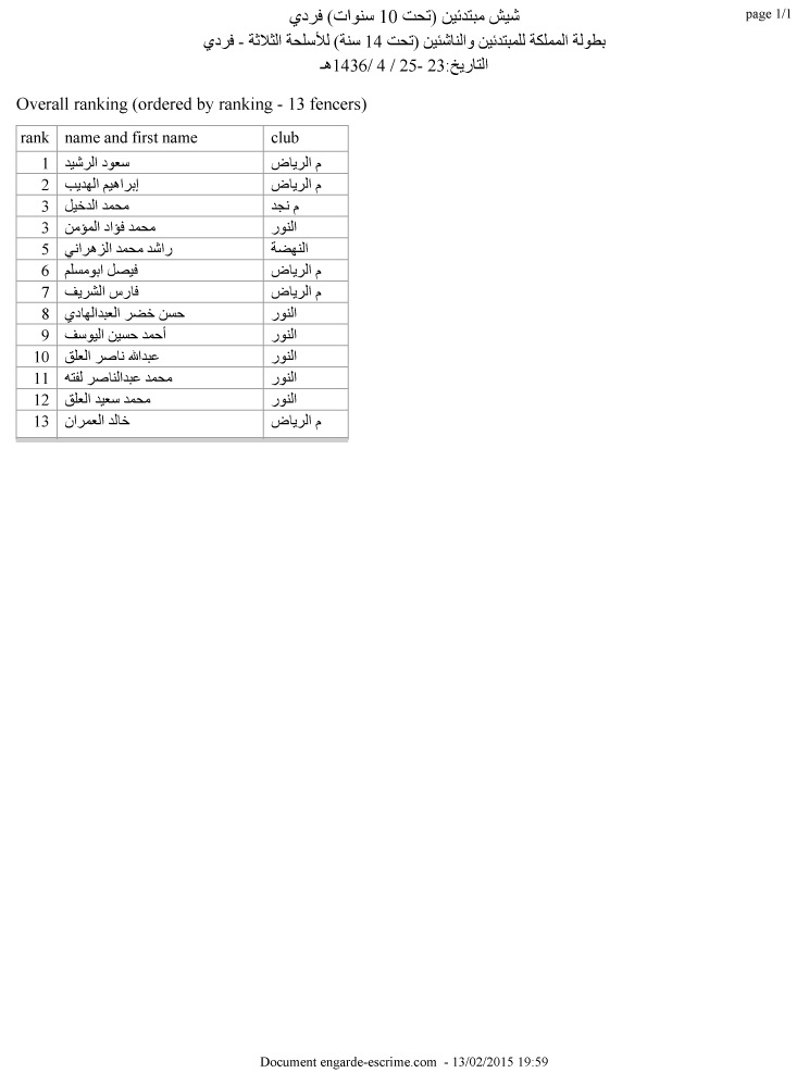 شيش مبتدئين (تحت 10 سنوات) فردي