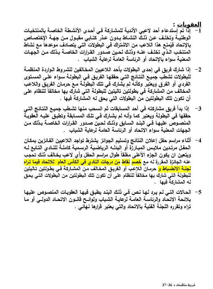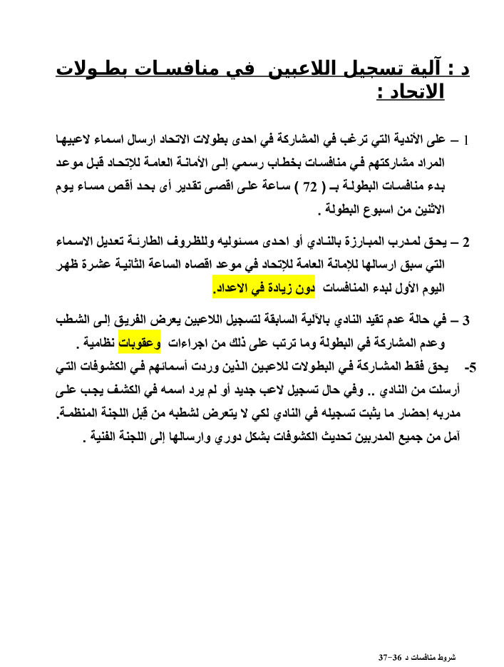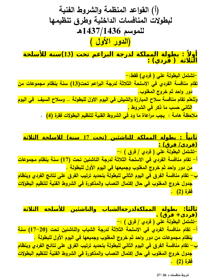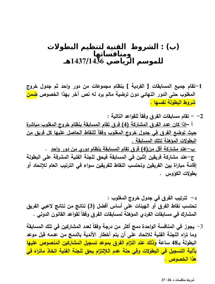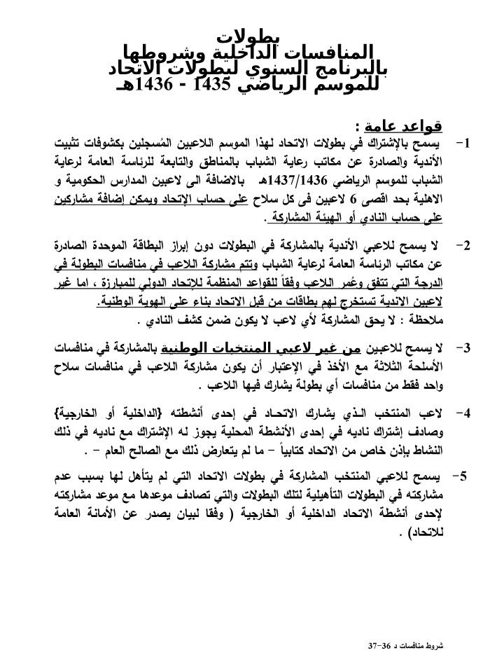 شروط وقواعد المسابقات المحلية للدور الاول للموسم الجديد 1436-1437 هـ